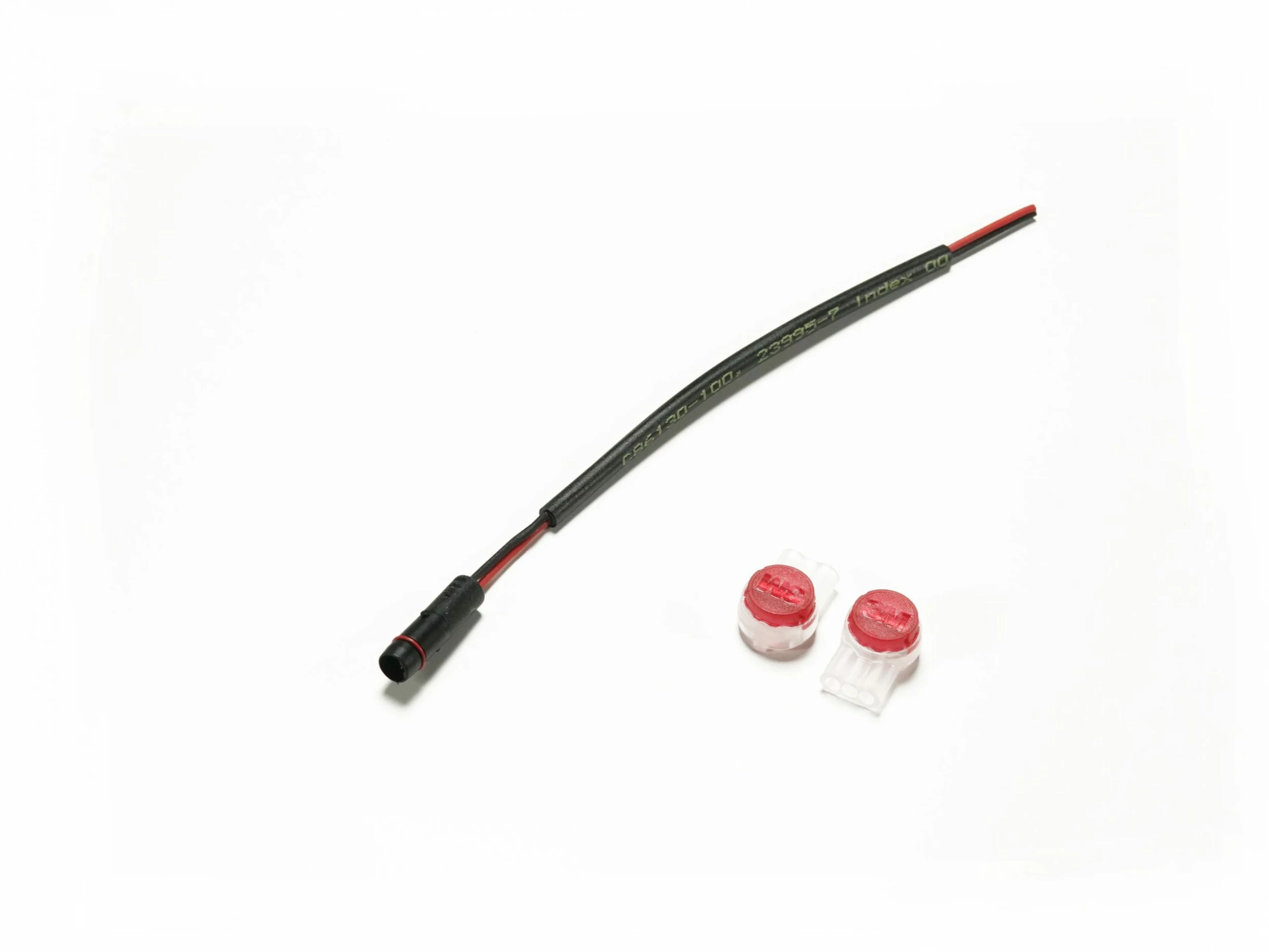 Câble lumière pour la connexion de votre feu arrière Lupine C14 à votre moteur Bosch, Brose, Yamaha ou TQ. Ce câble est livré avec deux connecteurs de jonction Scotchlok, qui garantissent une connexion électrique étanche pour chacun des fils (connecteurs remplis avec un composant d’étanchéité polymère).
