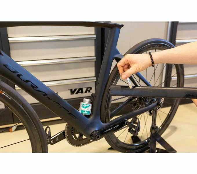 La pâte de montage Motorex Carbon Paste est indispensable pour le montage de pièces en carbone et en aluminium. Elle convient parfaitement pour les tiges de selle, les pédales, les potences et pour de nombreuses autres pièces. L’utilisation de la pâte de carbone permet de réduire jusqu’à 30 % le couple de serrage nécessaire à certaines pièces. La graisse de montage facilite également le démontage de liaisons par adhérence.