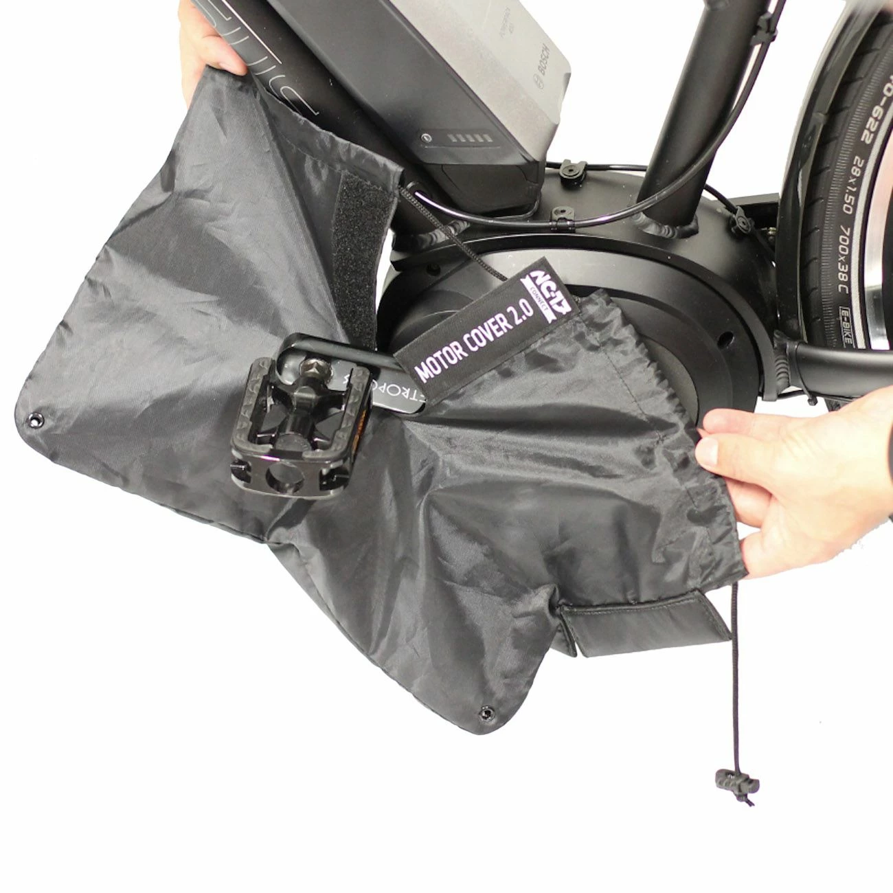 Grâce à cette housse en nylon, protégez le moteur central de votre vélo électrique des éclaboussures d’eau, des jets de pierres, des intempéries et autres dommages (poussières, saletés, sels de voirie) qui peuvent survenir lors de son transport à l’arrière de votre véhicule.