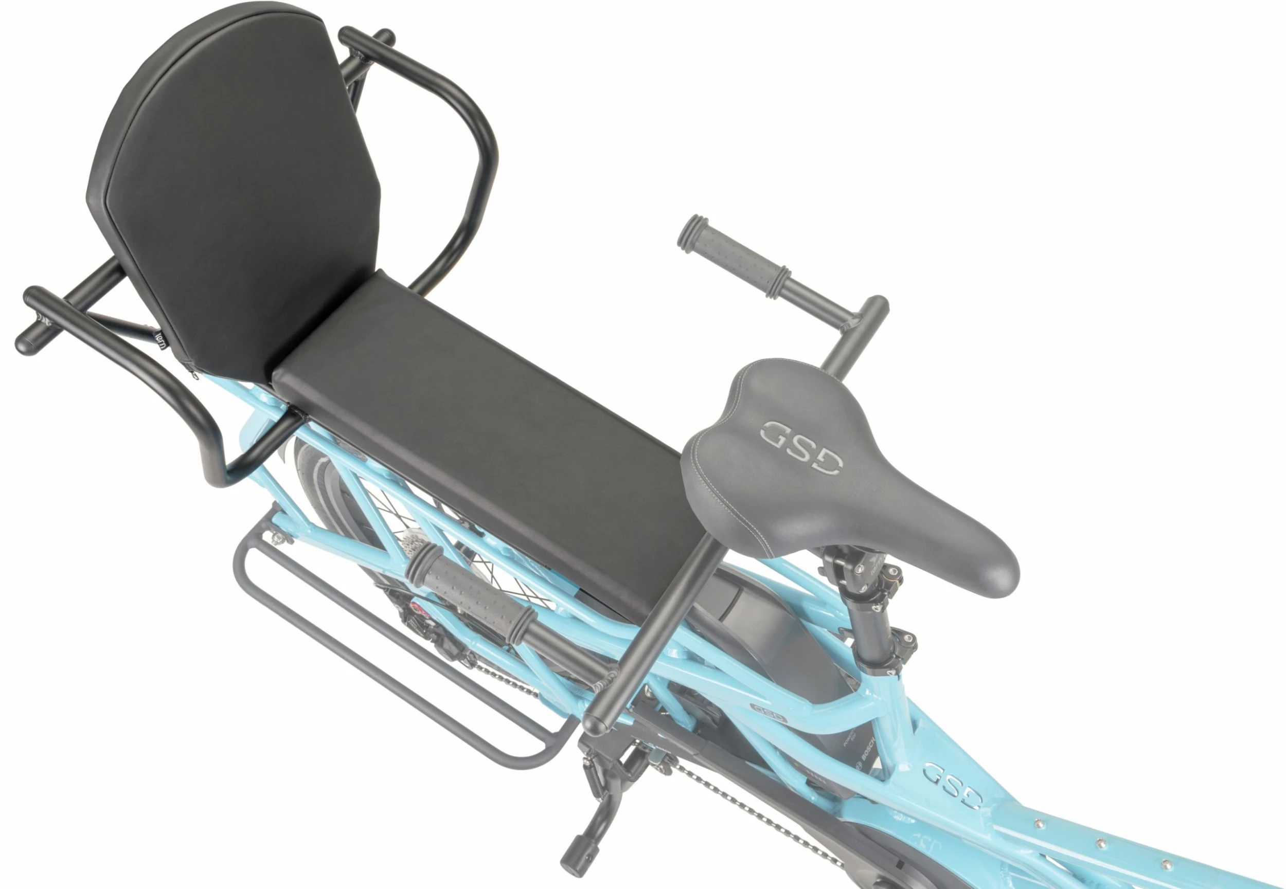 Le siège Tern Captain’s Chair permet aux enfants et aux adultes de monter à l’arrière de votre vélo électrique GSD ou HSD.