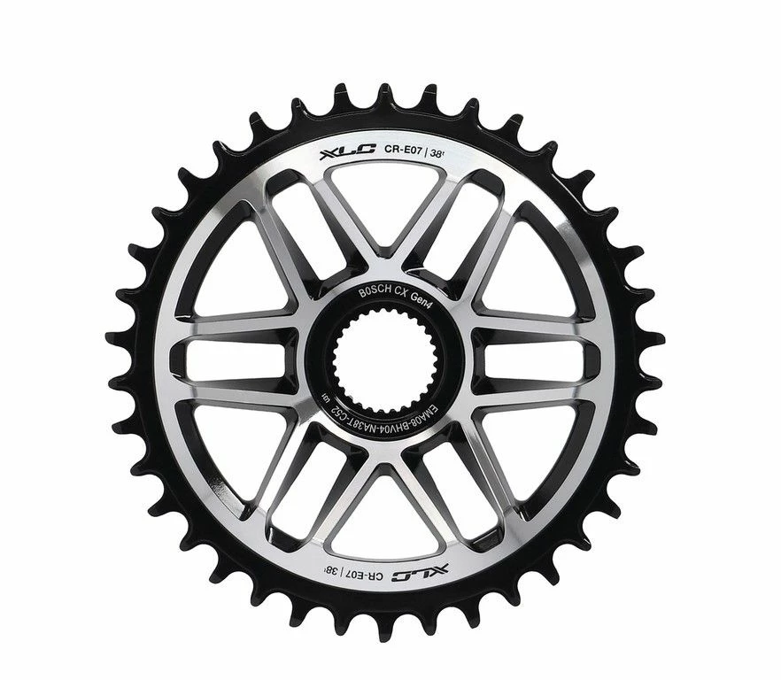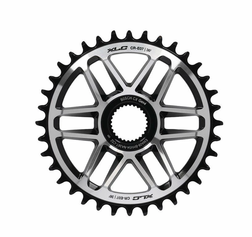 Plateau CR-E07 d’XLC pour VTT électriques avec moteur Bosch Gen.4 et transmission 12 vitesses. Ce plateau en alliage d’aluminium haute qualité, usiné CNC est un plateau Direct Mount avec une ligne de chaîne de 52 mm.